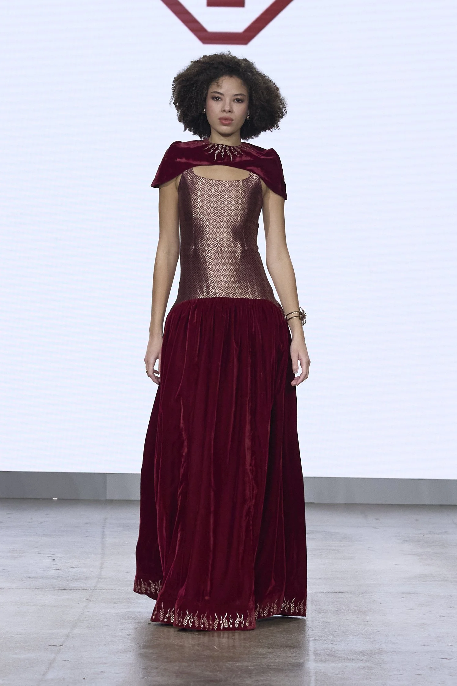 Khushi Kumar, a talented designer working between India and London, stated: “I just launched my debut collection, and I can’t believe I get to show at LFW… I truly feel like Fashion Scout plays such a key role for emerging designers because to give someone this big of a platform is phenomenal. A space full of helpful and supportive people, which stands out in this industry.” Her collection celebrates sustainability-led designs, positioning Indian textiles within a contemporary international framework and showing how tradition can coexist with innovation.